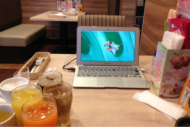 台風が来ているが今日もいつも通りにガストで朝食。